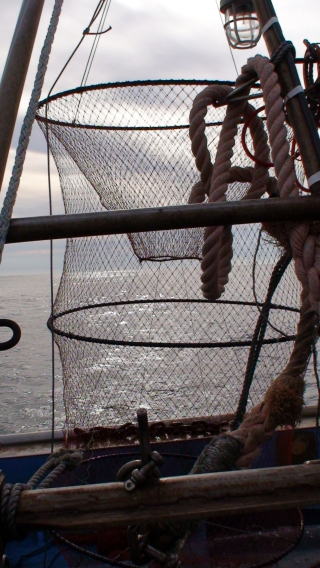このかご網漁は、潮の流れが重要なポイントです。 |