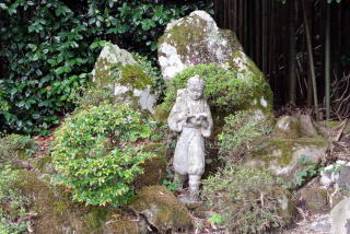 日南町石見東小学校跡地の入口に「学びの道」と書かれた門がある。細い坂道を登ると、森陰に二宮金次郎の像を見つけた。金次郎像の多くは銅製であったため、戦時中の金属供出で無くなってしまったが、この像は石像なので難を逃れたとのことである。薪を背負って本を読みながら歩く姿は、学問の大切さを教える象徴でもあった。