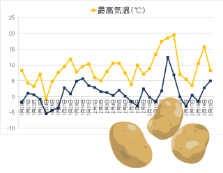 わが家の狭い庭の、わずか1平方メートルほどの空き地にジャガイモを植えた。暖かい日だったので汗をかきながら植え付け作業を楽しんだが、その後寒さと雪の日が続き、あの日の陽気は何だったのかと首を傾げた。