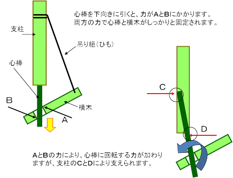 自在鈎(じざいかぎ)と同じしくみです。 |