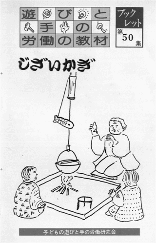 じざいかぎを見ていると、「いろりを囲んでおじいちゃんやおばあちゃんの昔話を聞く」風景が頭に浮かびます。「遊びと手の労働の教材 ブックレット第50集」の表紙にぴったりのイメージの絵がありますので、引用してご紹介します。