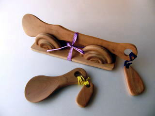 さて、私がこの話を聞いた時、頭に浮かんだ疑問は「何故、靴べらだったのか?」ということでした。やぶちゃんの返答は、「特に意味はない」とのことでした。もともと梨の木でいろいろ形な靴べらをつくっていましたので、その作業の延長みたいなものと考えていたようです。あえて説明するのであれば、「小さなもので、実用的で、誰もが使えるものであればじゃまにはならないから」ということでした。